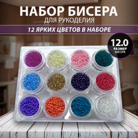 Бисер №12 в ассортименте, баночки с пласт.крышкой по 1,5 мл