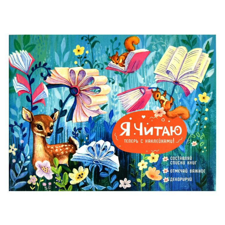 Читательский дневник с наклейками , 165х210 мм, 24 л, арт. 64293 ЛЕСНЫЕ ДРУЗЬЯ / Блок - белый офсет 80 г/м?, мягкий переплёт (2 скобы по короткой стороне), матовая ламинация/