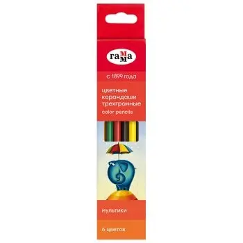 Яркие цвета поднимут настроение даже в пасмурный день! Шесть разноцветных карандашей от бренда «Гамма» помогут маленькому художнику создать настоящий шедевр. Трехгранная форма удобна для детской руки, а острый грифель легко рисует по бумаге без лишнего нажима. Европодвес облегчит хранение, ведь теперь все канцелярские принадлежности будут висеть ровным рядом, как солдаты в строю.