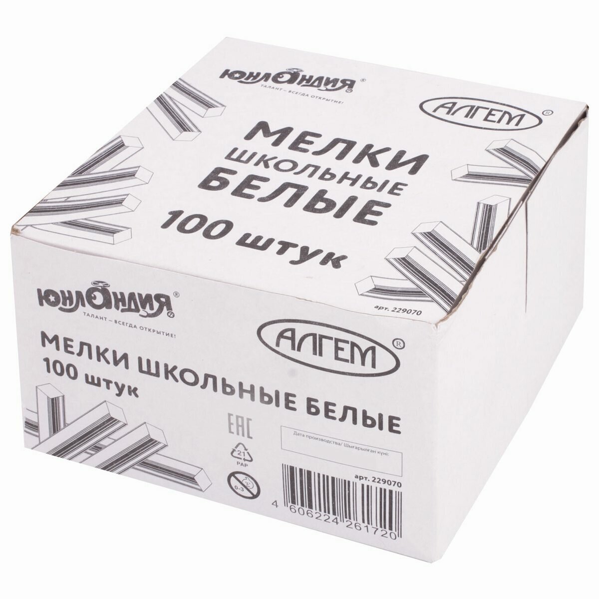 Мел белый (ЮНЛАНДИЯ) (Алгем), натуральный квадратный, упаковка 100 шт. цена за 1 шт. 229070