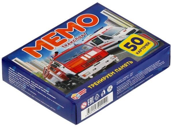Настольная игра Мемо "Транспорт" 50 карточек, Умные игры, в коробке