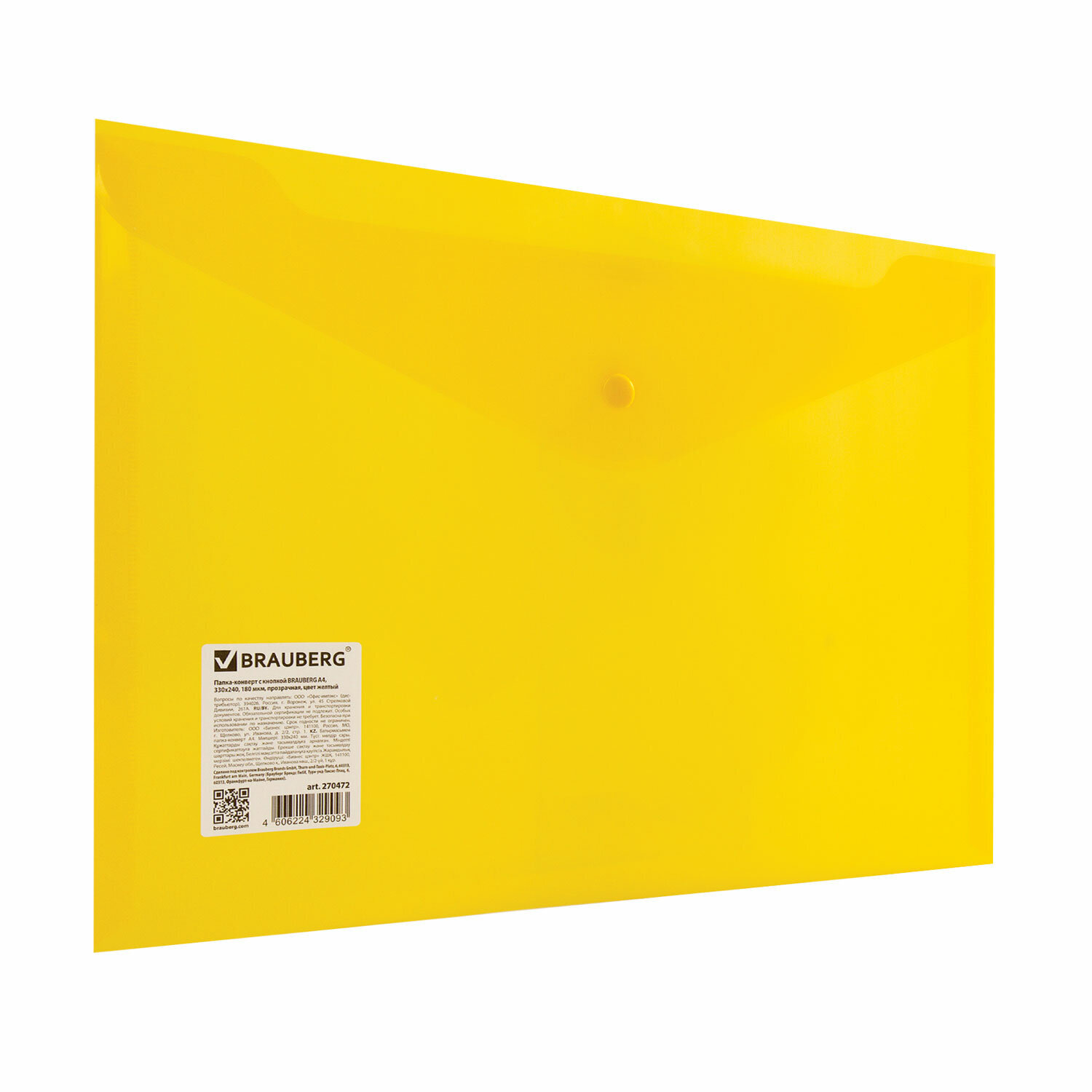 Папка на кнопке от бренда BRAUBERG – это надёжный помощник для хранения документов формата A4. Прозрачный корпус жёлтого цвета выполнен из сверхпрочного полипропилена толщиной всего 0,18 мм, что обеспечивает долговечность использования папки даже при интенсивной эксплуатации. Вместимость папки составляет целых 100 листов, а благодаря удобству застёжки-кнопки документы всегда будут под рукой и в полном порядке. Стильный дизайн добавит игривости вашему рабочему месту!