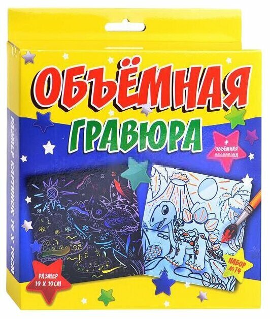 Гравюры Объёмный набор 14. Фламинго + динозавр, Р2237, Ракета, два листа, с раскраской