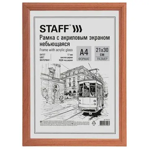 Рамка НЕБЬЮЩАЯСЯ 21х30 см, МДФ под дерево, багет 17 мм, светлое дерево, акриловый экран, STAFF "Carven", 391213