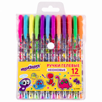 Ручки гел 12 цв (ЮНЛАНДИЯ), АССОРТИ НЕОН, корпус с печатью, узел 0,7 мм, линия письма 0,5 мм, 142806