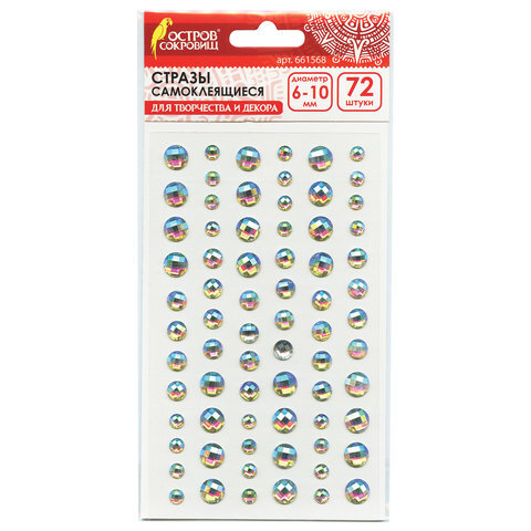 Стразы самоклеящиеся "Кристалл", ассорти, 6-10 мм, 72 шт., наподложке, ОСТРОВ СОКРОВИЩ, 661568